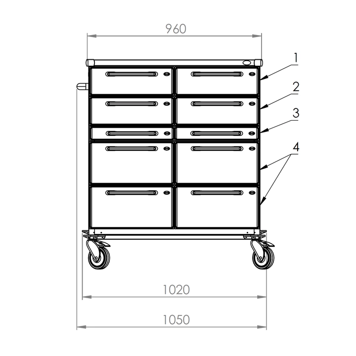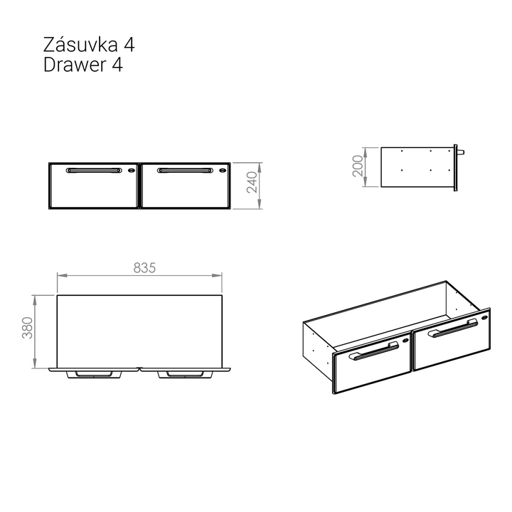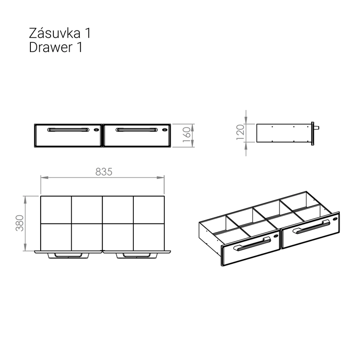 • prachotěsná MS zásuvka: kompaktní plast. čelo (ABS); 3/4 MS koš MINI (nosnost 10 kg); lze rozdělit příčkami
