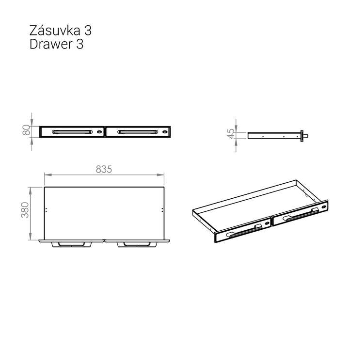 • teleskopické kuličkové plnovýsuvy s dotahem a dotlumením
