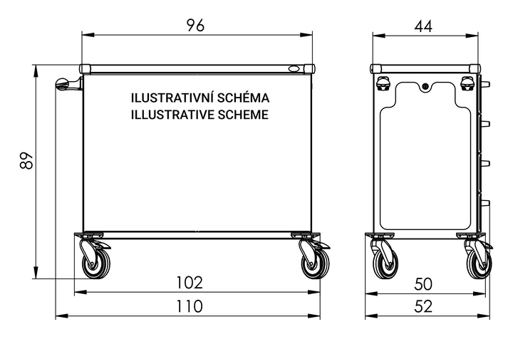 • w110 x d52 x h89 cm (low version) - basic dimensions of the cart without accessories