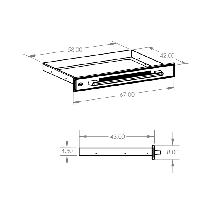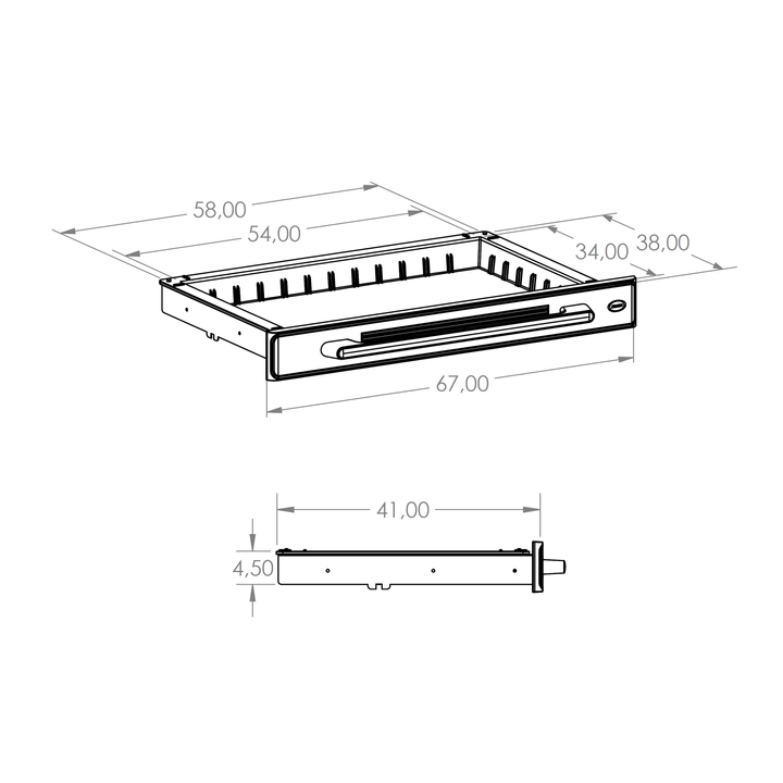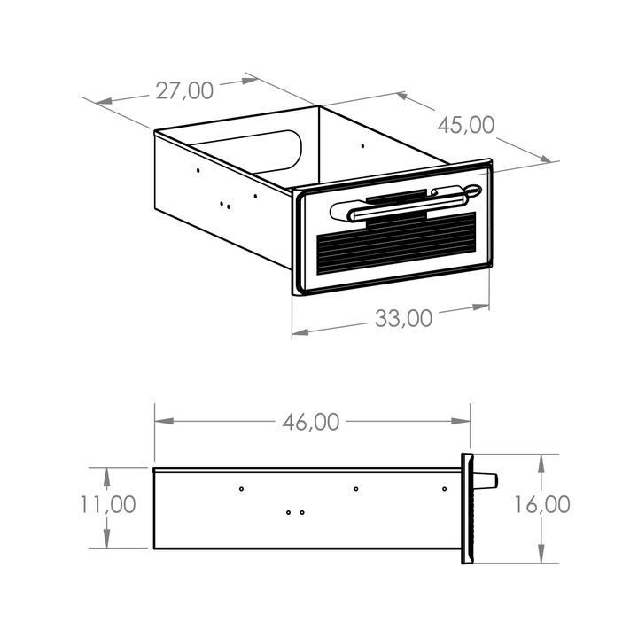 • dust-proof stainless-steel drawer: compact plastic face (ABS); 2 sizes: STANDARD (load: 20 kg) and (1/2) MINI (load: 10 kg)