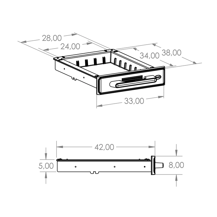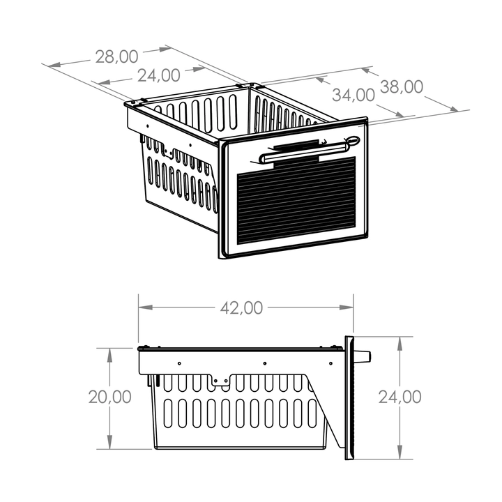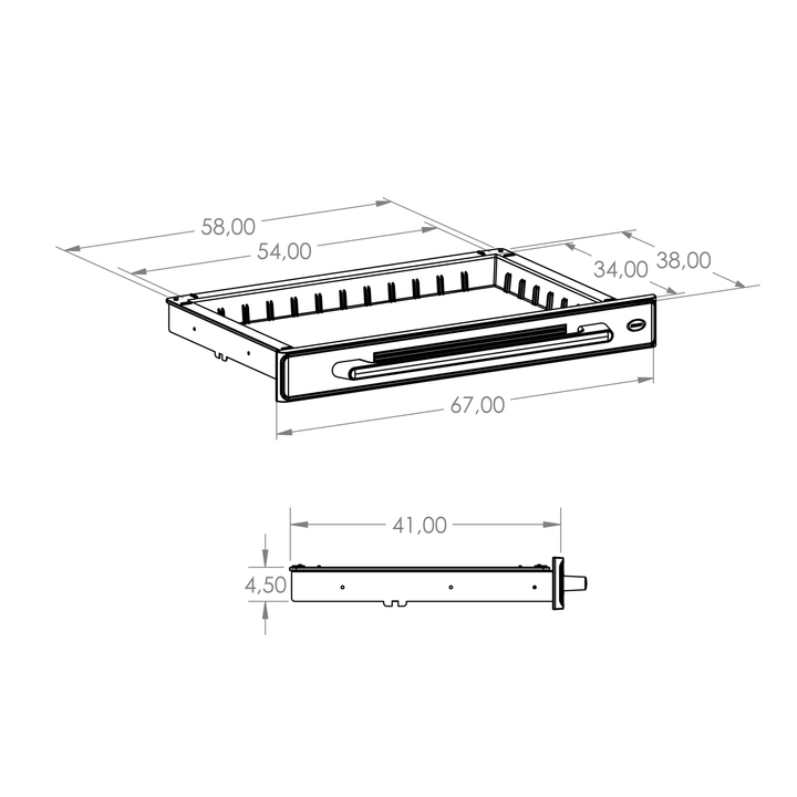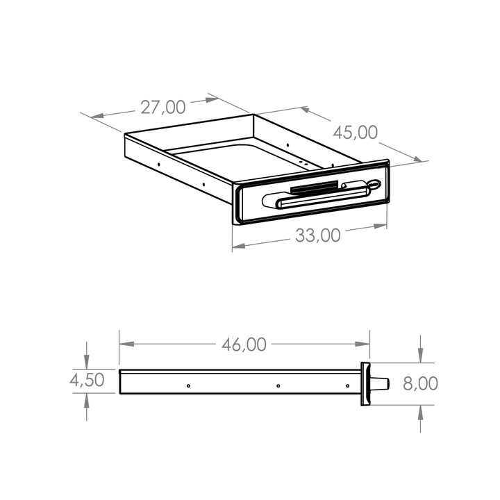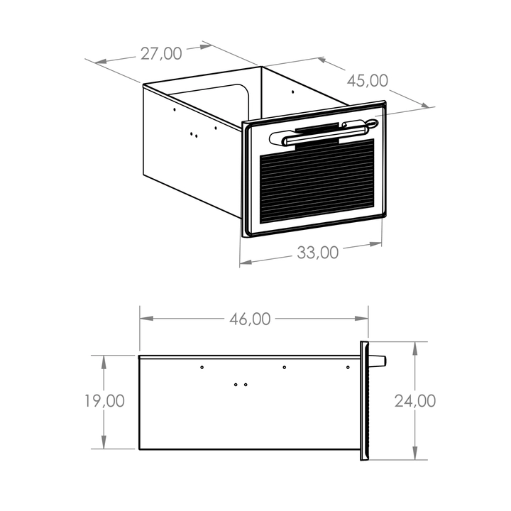 • dust-proof stainless-steel drawer: compact plastic face (ABS); 2 drawer sizes: STANDARD (load: 20 kg) and (1/2) MINI (load: 10 kg)
