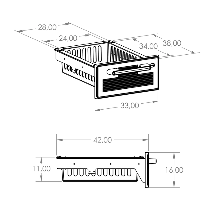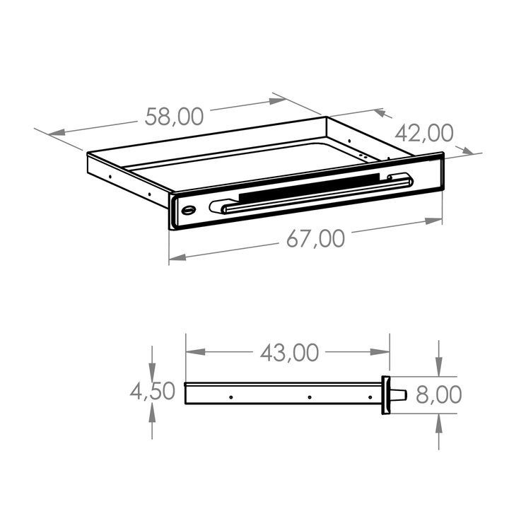 • dust-proof stainless-steel drawer: compact plastic face (ABS); 2 drawer sizes: STANDARD (load: 20 kg) and (1/2) MINI (load: 10 kg)