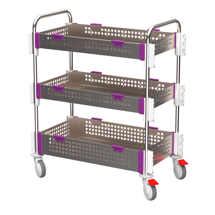• konstrukce vozíku a boxů: nerezová ocel AISI304, plastové ochranné prvky v barevném provedení