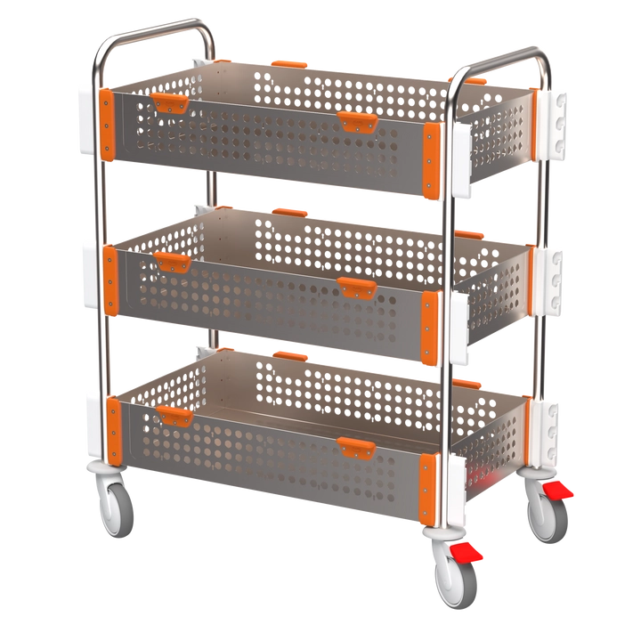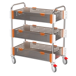 • konstrukce vozíku a boxů: nerezová ocel AISI304, plastové ochranné prvky v barevném provedení