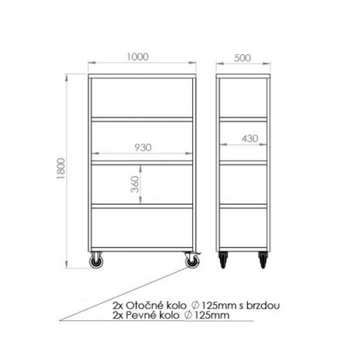 • 2x nerezové otočné kolo s brzdou d=125 mm