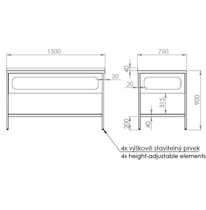 • 4x výškově stavitelný prvek