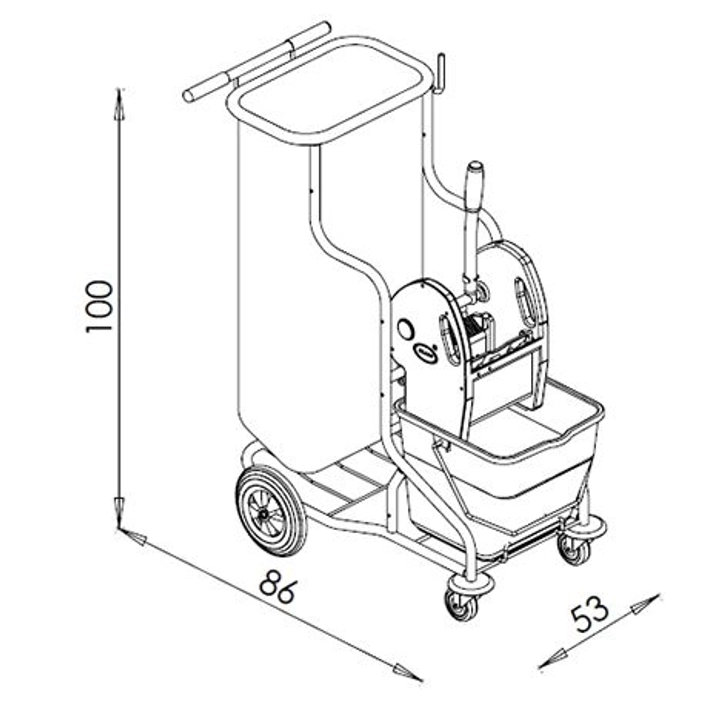 • š86 cm x h53 cm x v100 cm - rozměry vozíku, 1x sklopný držák vaku 80l