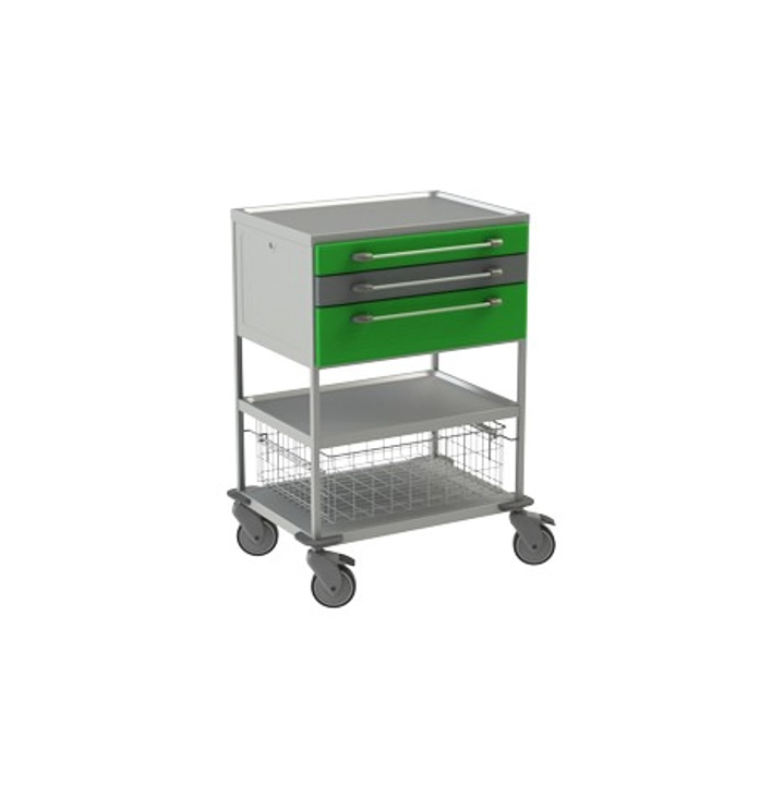 • 4x kvalitní otočné plastové kolo d=12,5 cm; 2x brzda; plastové nárazníky