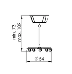 • podvozek d=54 cm; v73 - 109 cm - rozměry stojanu• konstrukce: nerez ocel AISI304• 1x nádoba d=38 cm; objem: 11l• 5x otočné kolo d=5 cm, 2x brzda; plast. nárazníky• antistatické provedení stojanu• celková nosnost: 10 kg