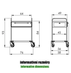 • 4x kvalitní otočné plastové kolo d=12,5 cm; 2x brzda; plastové nárazníky