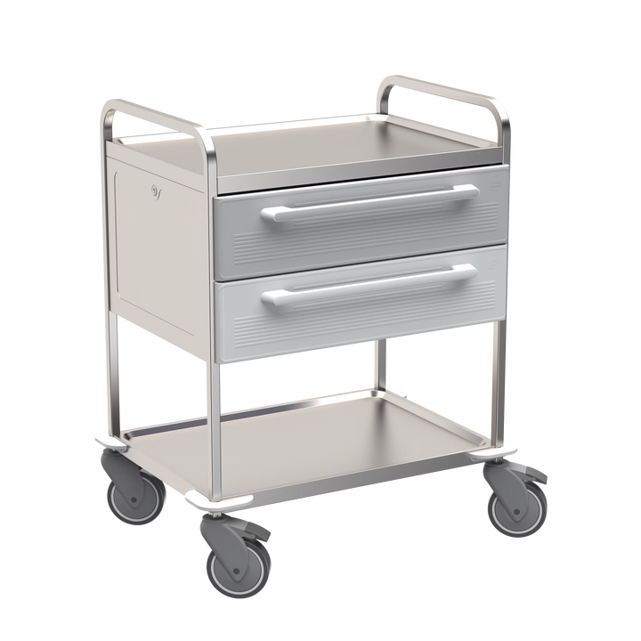 • 4x kvalitní otočné plastové kolo d=12,5 cm; 2x brzda; plastové nárazníky