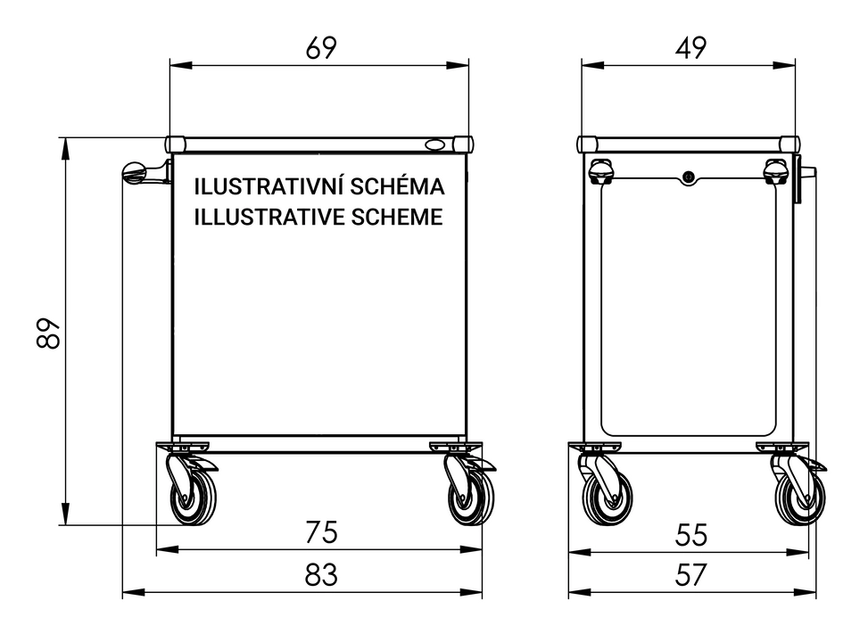 • š83 cm x h57 cm x v89 cm (nízká verze) - zkl. rozměry vozíku bez příslušenství