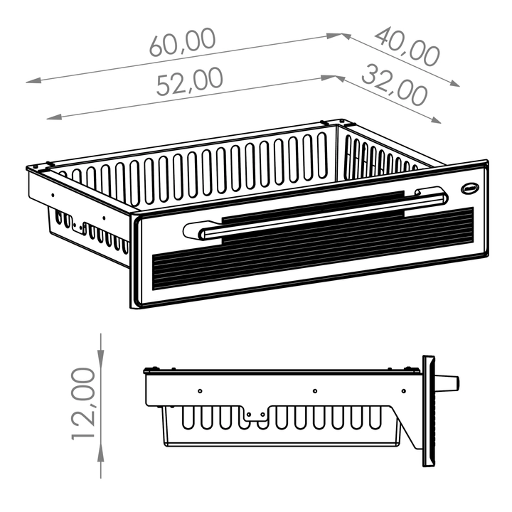 • prachotěsná plechová zásuvka: kompaktní plast. čelo (ABS); nosnost: 20 kg