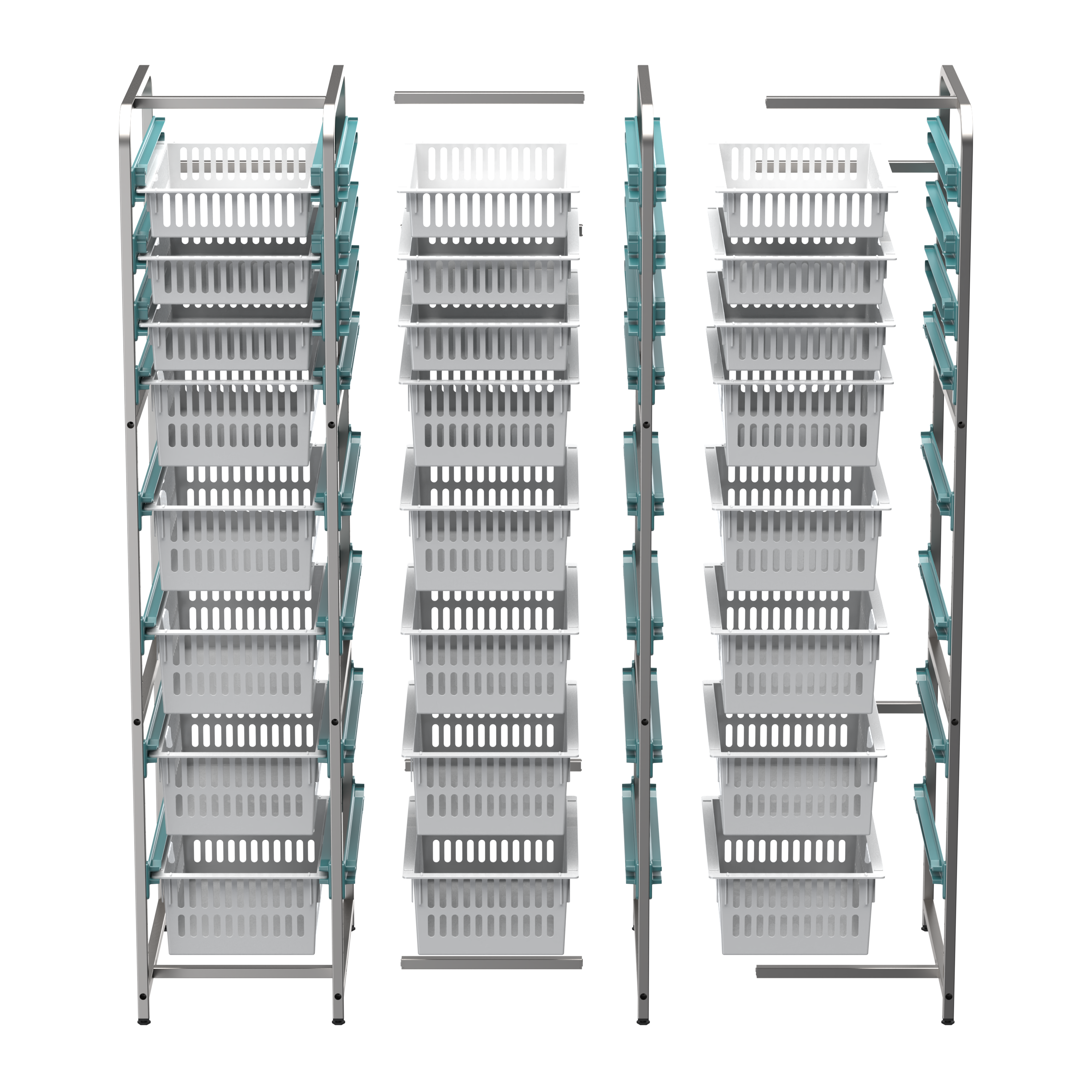 - materiál konstrukce regálů: nerezová ocel AISI304 nebo ocel s šedou práškovou barvou RAL7042